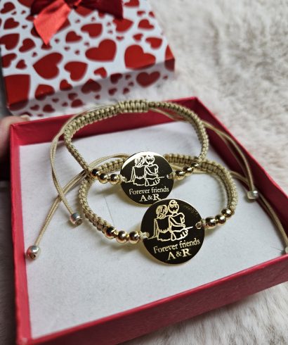 Set de 2 bratari pentru prietene sau surori cu mesajul Forever friends si initialele lor la alegere BPC349