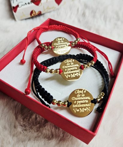 Descoperă o gamă variată de brățări personalizate pentru cupluri, familie, copii. Produse personalizate și gravate cu nume, inițiale, dată, etc. pentru persoanele dragi ție. Personalizează-le așa cum îți dorești și noi le expediem în 24h.