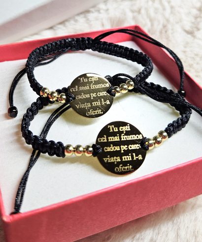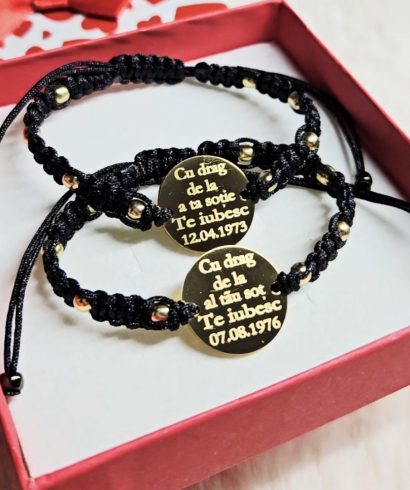 Descoperă o gamă variată de brățări personalizate pentru cupluri, familie, copii. Produse personalizate și gravate cu nume, inițiale, dată, etc. pentru persoanele dragi ție. Personalizează-le așa cum îți dorești și noi le expediem în 24h.