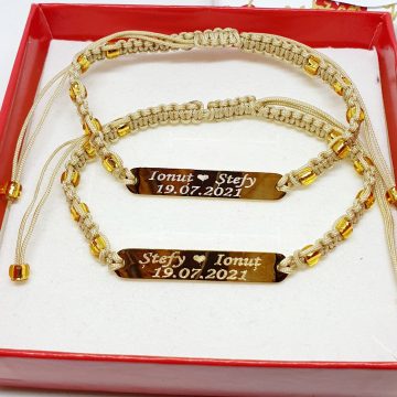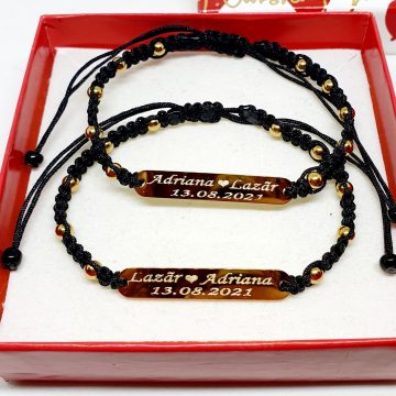 Set de 2 bratari personalizate cu Nume si Data pentru cupluri BPC122