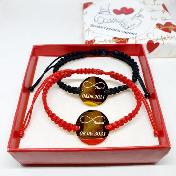Set de 2 bratari pentru cupluri personalizate cu nume si data BPC001