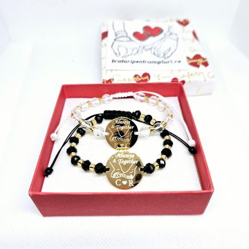 Set de 2 bratari cu mesajul Mereu impreuna si initiale la alegerea clientului BPC101