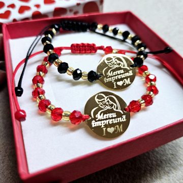 Set de 2 bratari cu initiale, data si mesajul Te iubesc.