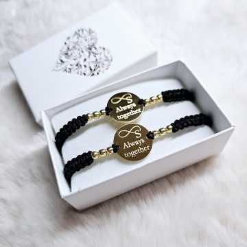 Set de 2 bratari cu initiala in infinit si mesajul Always together.