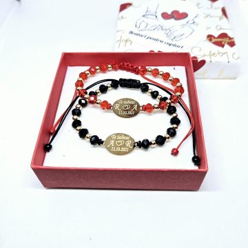 Set de 2 bratari cu initiale, data si mesaj la alegere.