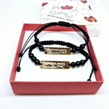 Set de 2 bratari cu initiale la alegere si mesajul ”Impreuna pentru totdeauna”.