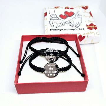 Set de 2 bratari pentru cupluri cu mesaj si data la alegere.