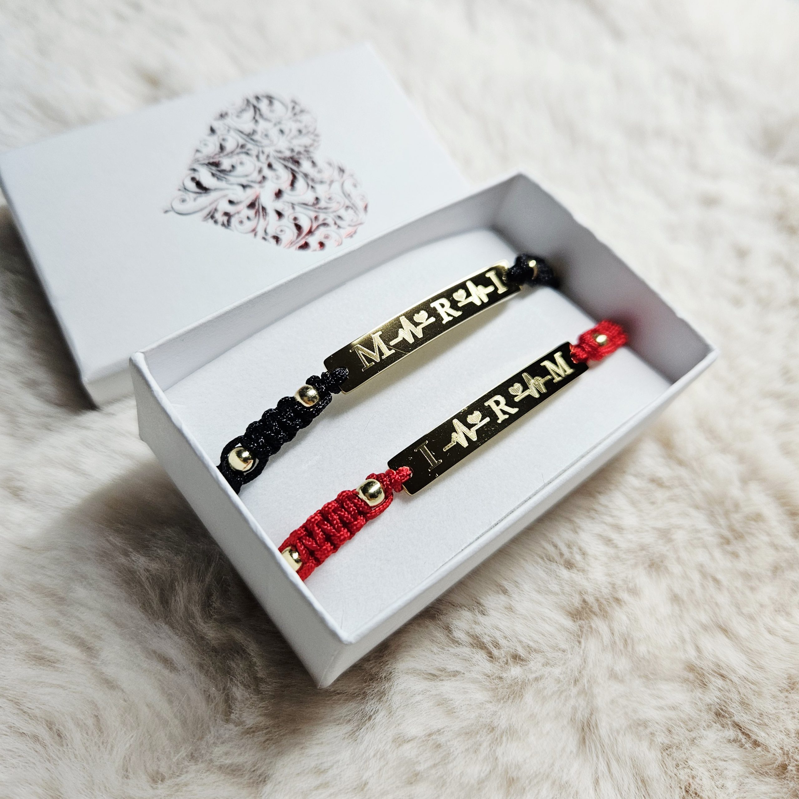 Set de 2 bratari cu 3 initiale la alegere gravate pe placuta si bataile inimii BPC411