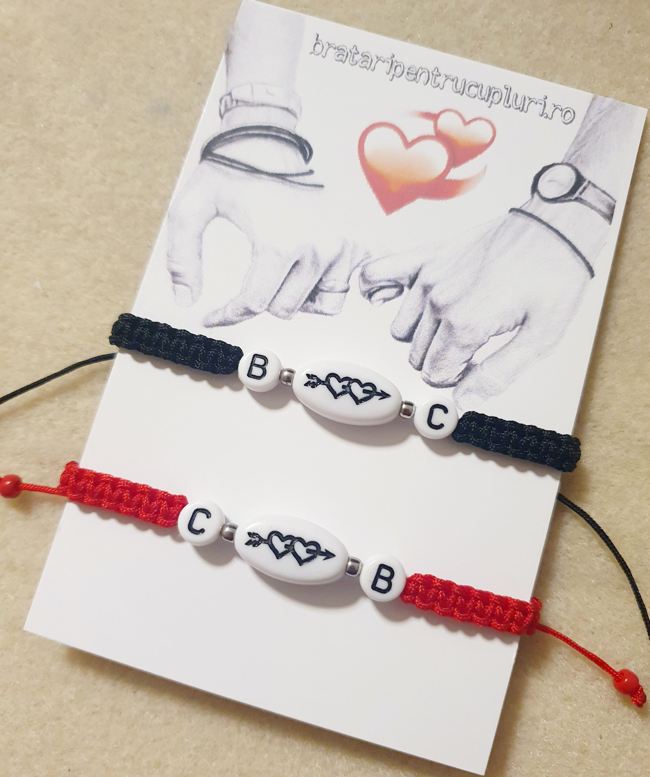 Set de 2 bratari cu 2 initiale la alegere si 2 inimi.