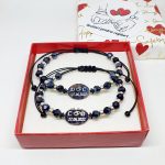 Set de 2 bratari cu margele fatetate cu initiale si data la alegere BPC336