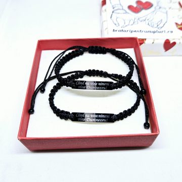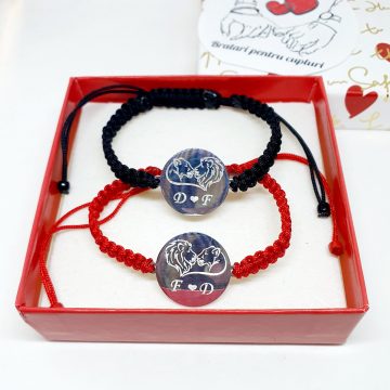 (completati rubricile de personalizare a ambelor bratari (pentru femeie si pentru barbat) cu ce doriti sa fie gravat pe ele, puteti modifica culoarea snurului in : rosu, negru sau crem).