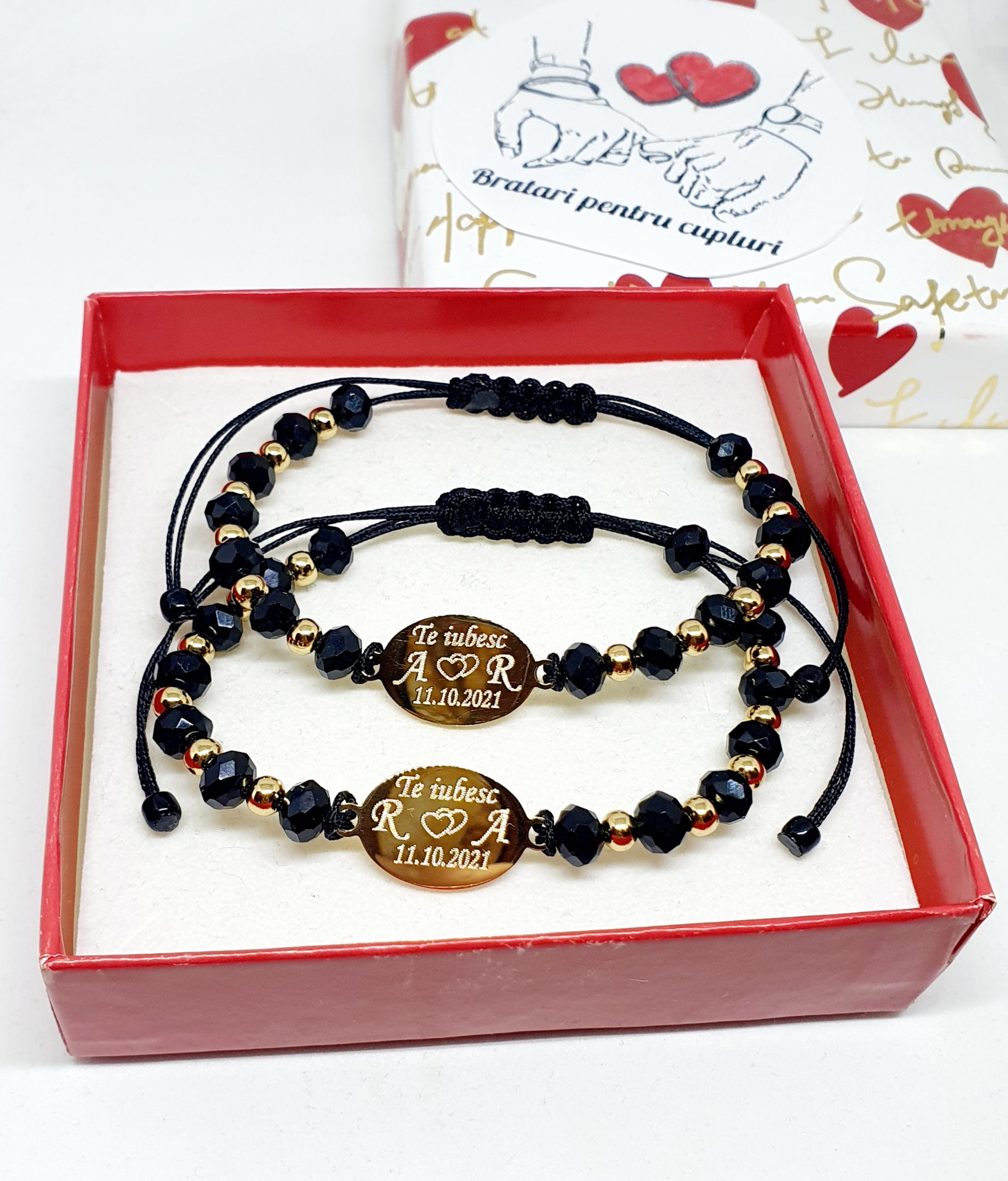Set de 2 bratari gravate cu mesajul ”Te iubesc”, initiale si data la alegere.