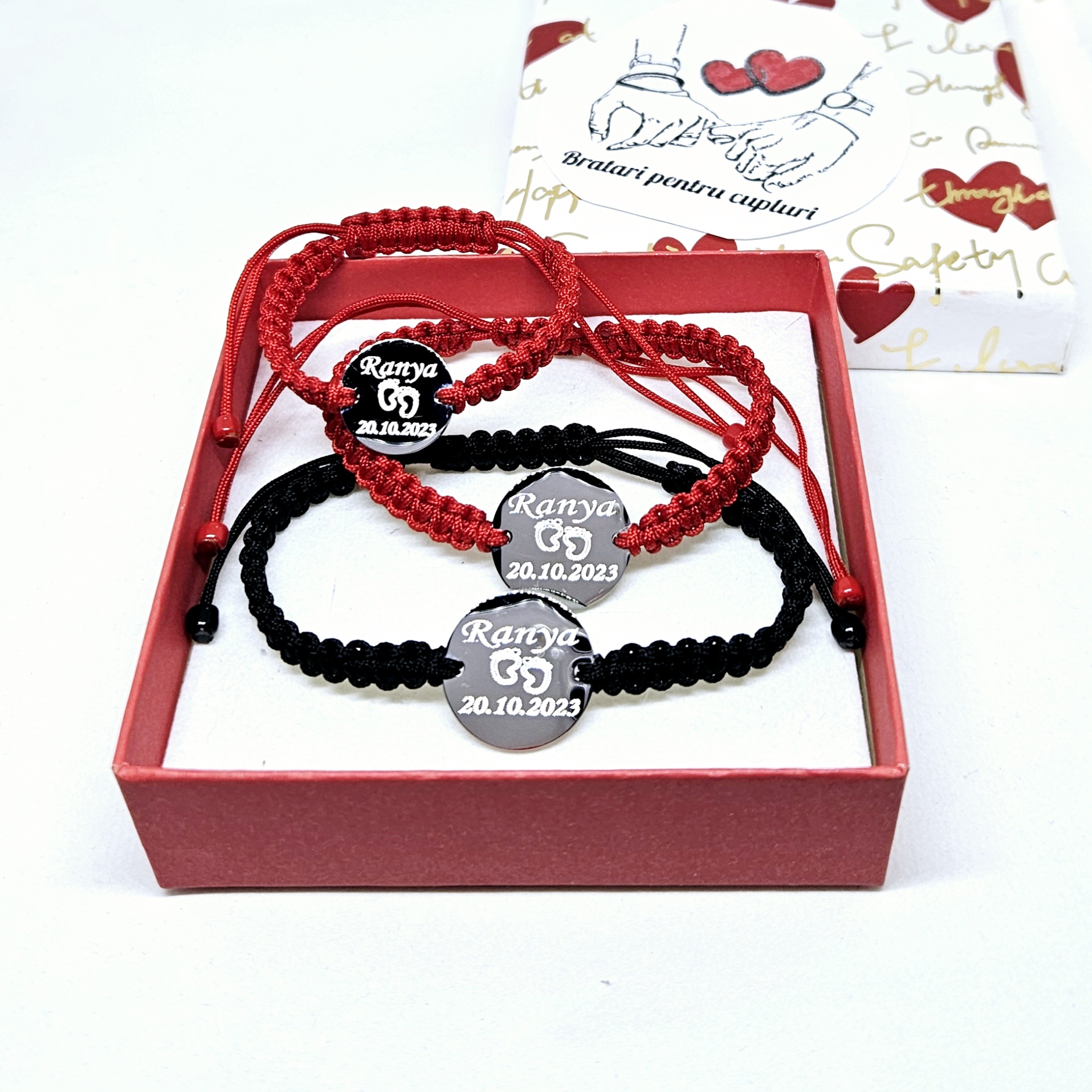 Set de 2 bratari pentru cupluri cu placuta personalizata cu Nume si Data BPC094